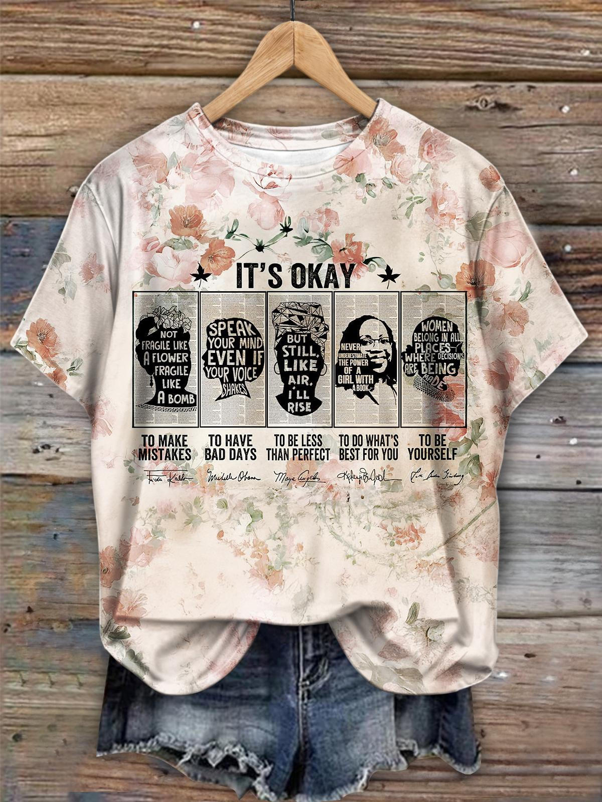 Feminist Representative Portrait Print Crew Neck T-shirt